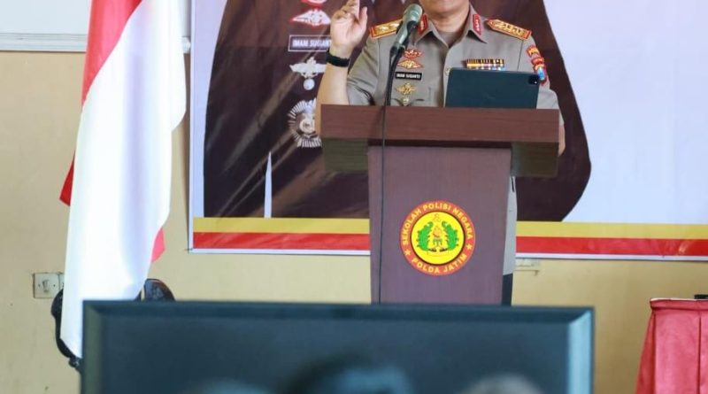 MOJOKERTO, Kapolda Jawa Timur Irjen Pol Imam Sugianto, memberikan pembekalan kepada siswa Diktukba Polri Gelombang II T.A 2023 SPN Polda Jawa Timur, Selasa (19/12/2023).