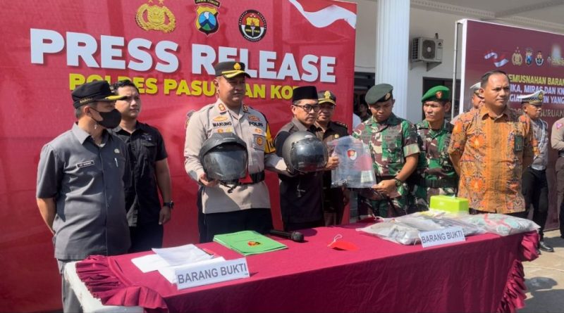 Polresta Pasuruan – Polres Pasuruan Kota, bersama dengan Forum Komunikasi Pimpinan Daerah (Forkopimda) Kota Pasuruan, menggelar konferensi pers (press release) untuk mengungkapkan hasil penyelidikan dan penangkapan dalam kasus narkotika yang dilakukan oleh Satuan Narkoba dan kasus kriminal oleh Satuan Reserse Kriminal (Sat Reskrim). Kamis(21/12/2023).