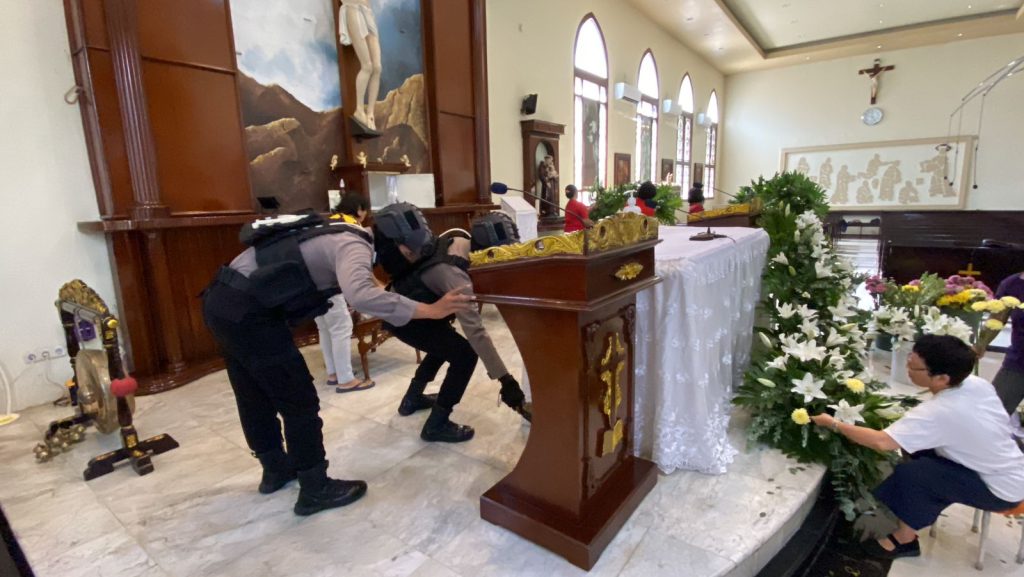Kabag OPS Polres Pasuruan Kota Kompol Tatuk S Irianto S.H menyampaikan bahwa pihaknya menurunkan Anggota Raimas dan Patroli Sat Samapta untuk laksanakan seterilisasi dan pengamanan di tempat ibadah atau Gereja wilayah Pasuruan Kota.