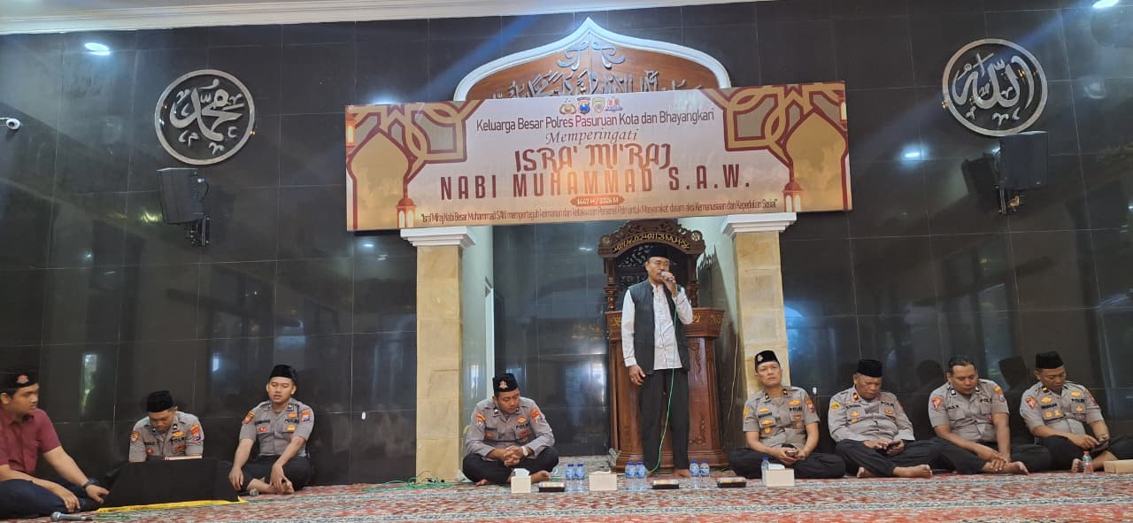 Polres Pasuruan Kota – Sebagai bentuk refleksi spiritual seluruh personel Polri dalam memperkuat iman, ketakwaan, dan akhlak mulia dalam menjalankan amanah sebagai pelindung, pengayom, dan pelayan masyarakat, Polres Pasuruan Kota menggelar peringatan Isra’ Mi’raj Nabi Muhammad SAW di Masjid At-Taqwa Jl. Gajah Mada Kota Pasuruan, Kamis (29/01/2026) kegiatan ini berlangsung penuh dengan penuh khidmat.