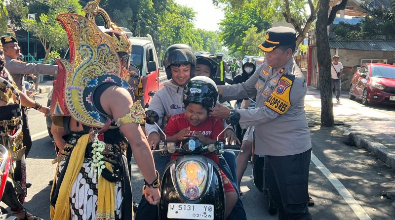 Kehadiran keduanya bukan bagian dari pertunjukan seni, melainkan simbol kampanye keselamatan dalam Operasi Keselamatan Semeru 2026 yang digelar Polres Blitar Kota Polda Jatim.